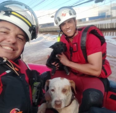 O trabalho dos bombeiros goianos que partiram rumo ao Rio Grande do Sul para ajudar na missão de resgate de vítimas das enchentes teve início neste domingo (5/5). O primeiro trabalho realizado foi no Rio do Sino, município de São Leopoldo, onde três pessoas e três cachorros foram socorridos com sucesso. Segundo a unidade local, são mais de 840 pedidos de vítimas ilhadas.