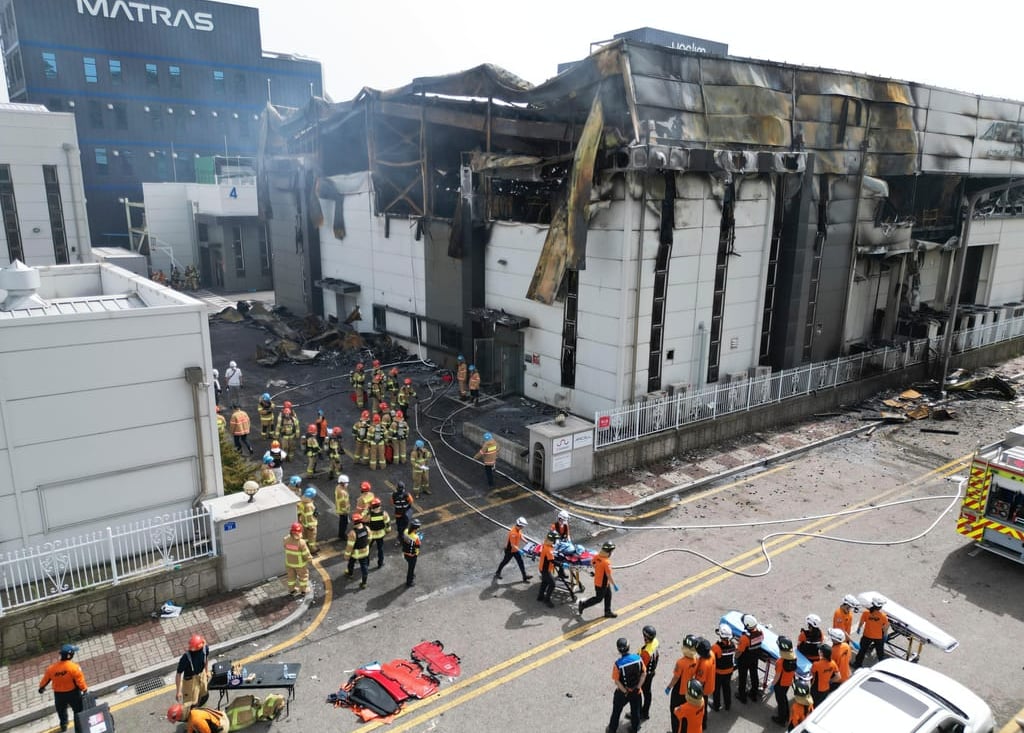 Um incêndio em uma fábrica de baterias de lítio na cidade de Hwaseong, Coreia do Sul, resultou na morte de 22 trabalhadores nesta segunda-feira, 24. A unidade da fabricante Aricell foi atingida pelo fogo, que já foi praticamente extinto. No momento do incidente, havia pelo menos 102 pessoas no local. Entre as vítimas, 18 eram cidadãos chineses, um laosiano e um ainda não foi identificado. Uma pessoa sofreu parada cardíaca e não resistiu, enquanto outras sete ficaram gravemente feridas e foram levadas para um hospital local.